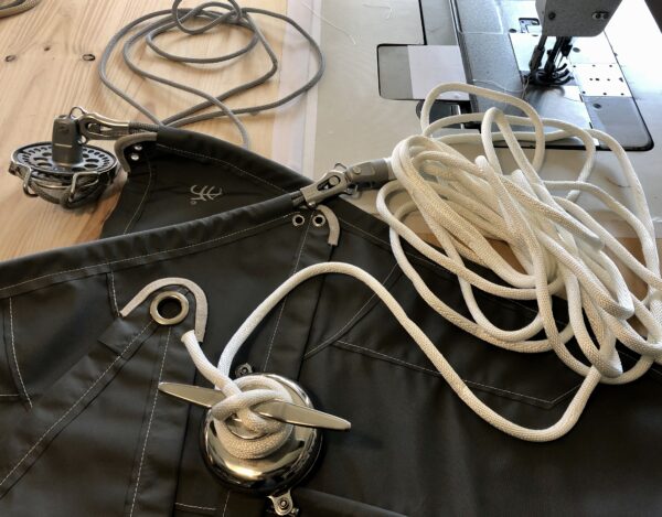Afin de faciliter la mise en place des voiles d’ombrage, nous avons développé un taquet unique en son genre permettant d’optimiser et de sécuriser la mise sous tension de l’écoute de voile volante. L’écoute devient encore plus simple à gérer.